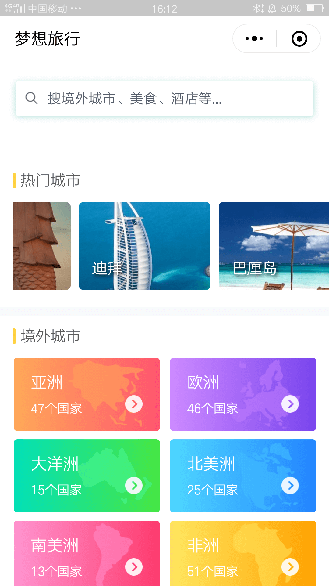 梦想旅行小程序是一个为用户提供境外城市旅游资讯的资讯小程序,并且在提供资讯的同时,开发可供用户互动交流、发表意见的功能,通过已在该城市旅游过的用户发表的内容,让这个平台展现的信息更具真实性。